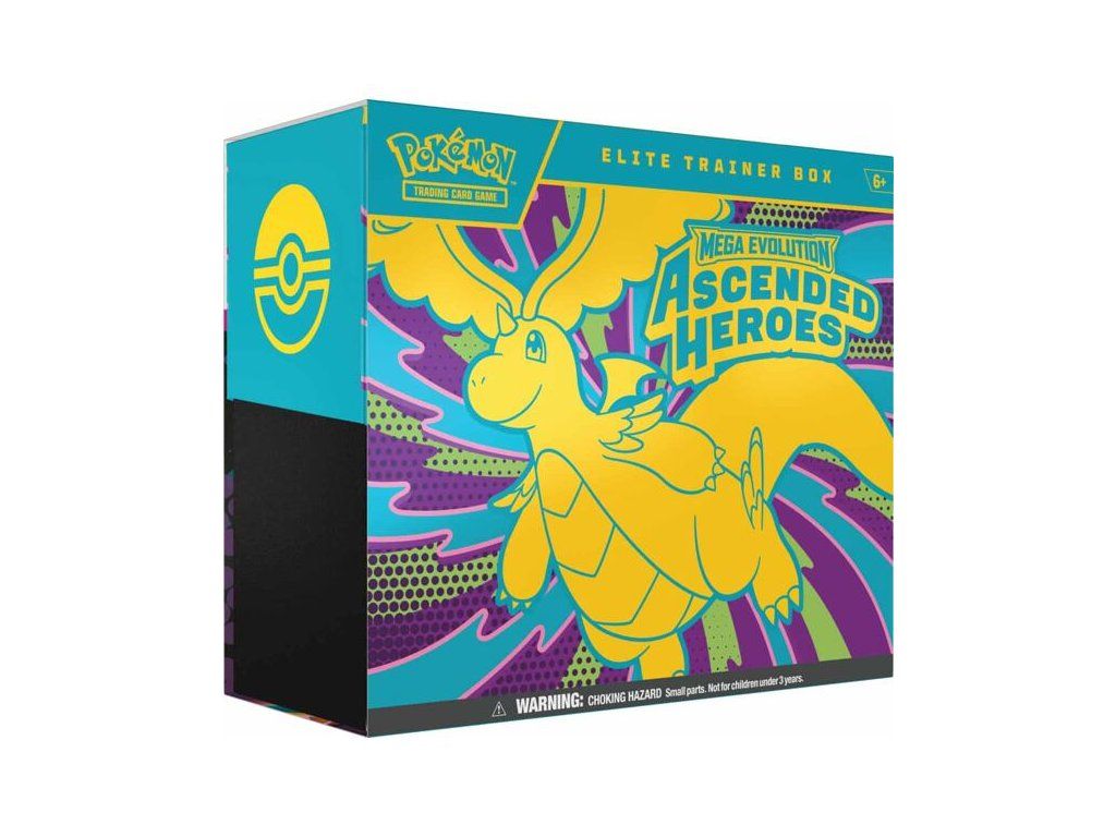 Elite Trainer Box Ascended Heroes je balení 9 balíčků Pokémon karet, 1 promo karty N's Zekrom, 65 obalů, 6 kostek a oddělovačů. Každý balíček obsahuje 10 karet. Celkově tak získáte 90 Pokémon karet.