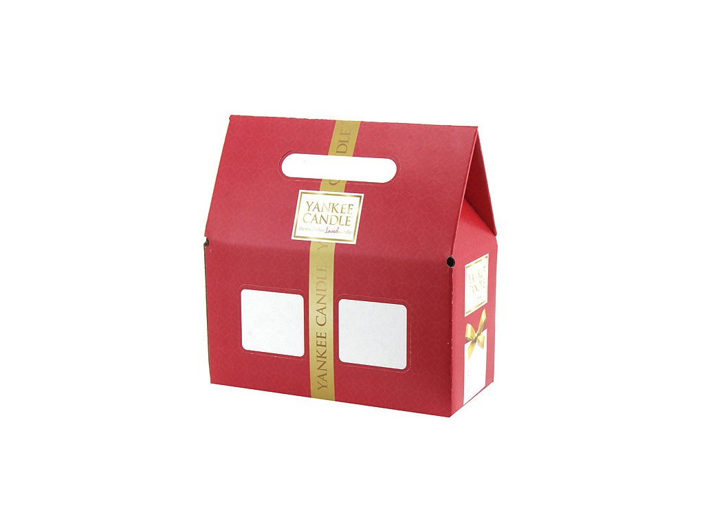 Krabička je vyrobena z kvalitního papíru s červeným matným povrchem a potištěná zlatým logem. Je určena na 2 ks vonných svíček Yankee Candle 410 g.